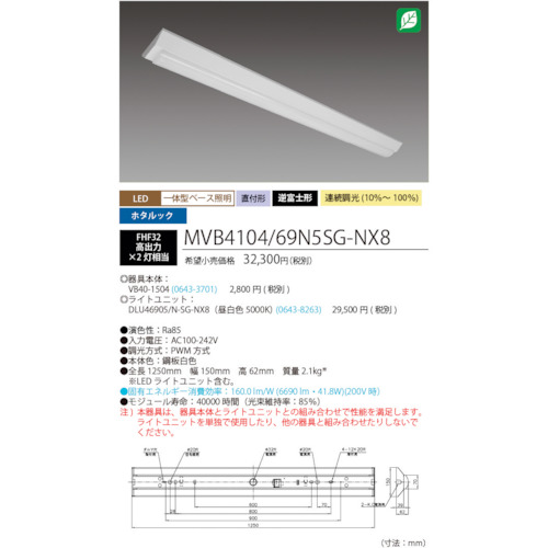 HotaluX ホタルック残光機能付LED一体型ベース照明Nu逆富士形150mm幅昼白色連続調光6900lm MVB4104/69N5SG-NX8