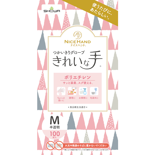 SHOWA ポリエチレン使い捨て手袋 ナイスハンドきれいな手つかいきりグローブ 内エンボス100枚入 Mサイズ NHKTTGPE-M100P