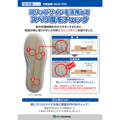 ●交換目安が分かる「スリップサイン」付で、靴底のすり減りによる耐滑機能低下をお知らせします。