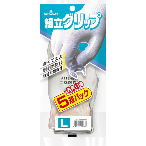 SHOWA ニトリルゴム背抜き手袋 組立グリップ5双パック グレー Lサイズ NO370-L5P