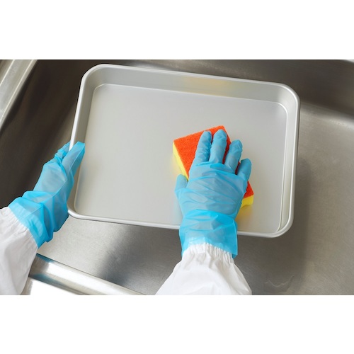 ●従来のポリエチレン製手袋に比べ伸びが良く、しなやかに手にフィットします。