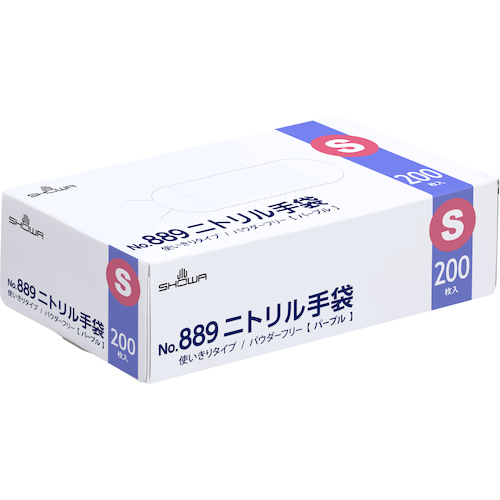 SHOWA No.889 ニトリル手袋 200枚入 Sサイズ パープル 1函 ニトリルゴム使い捨て手袋 粉なし NO889-S