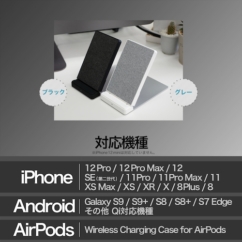 ●出力:5W/7.5W/10W(max)※7.5WはiPhone対応機種のみ※10WはGalaxy対応機種のみ