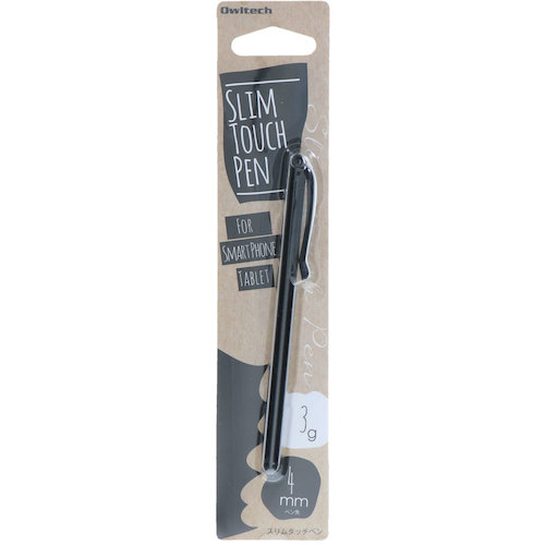 Owltech スリムで細部まで見やすくゲームや写真の落書きに最適 超軽量ストラップホール付き スリムタッチペン OWL-TPSE06-BK
