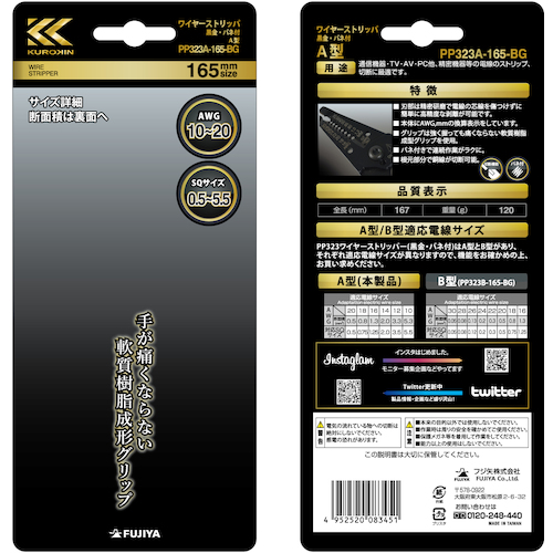フジ矢 ワイヤーストリッパA型(黒金) PP323A-165-BG