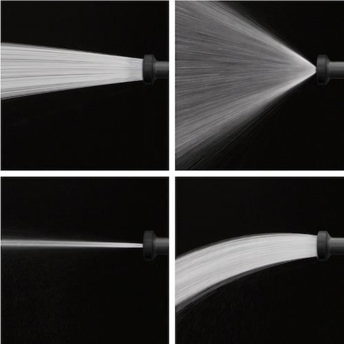 ●4水形切替でバケツフックが可能な散水ノズル付きです。