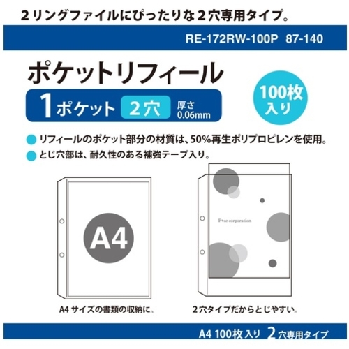 9. PLUS 87140)リフィールA4 2穴 100枚 RE-172RW-100P RE-172RW-100P