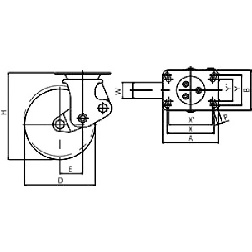 ユーエイ プレート式 固定 クッションキャスター 耐摩耗ゴム 車輪径200mm SKYタイプ SKY-2R型 取付寸法133×86(125×62) SKY-2R200WF(AR)-A-2