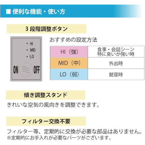 ●適用床面積は、約50分で臭気を気にならないレベルまで軽減できる床面積の目安です。(使用環境によります)