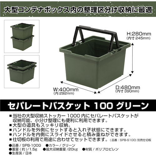 9. JEJアステージ セパレートバスケット グリーン#100 SPB-N100G