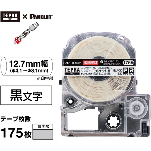 KING JIM 【純正】「テプラ」PROテープ カットラベル・パンドウィット/セルフラミネートラベル/白ラベル/黒文字 対応ケーブル径Φ4.1~8.1mm SZS100-150K