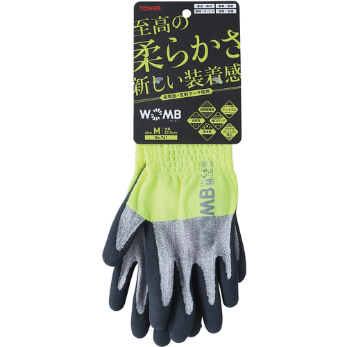 トワロン 天然ゴム背抜き手袋 WOMB-MF2高視認 蛍光イエロー M 741-M