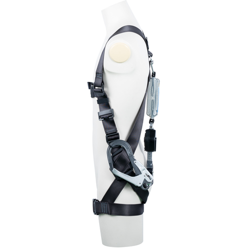 TSUYORON 黒影ハーネス シングルランヤード付き ロック機構付き巻取式コルトリトラ ダークグレー Lサイズ TH-504-CR93SV-OT-DG-BK-L-R23BX
