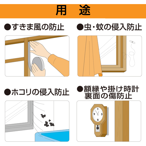 ●すき間からの風、ほこり、騒音を防止するテープです。