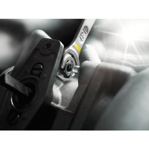 ●スパナでボルトをはさんだまま横向きで狭い箇所に挿入したり、上から力を入れて押さえながら、強いトルクでボルトを回すことができます。
