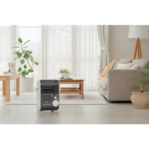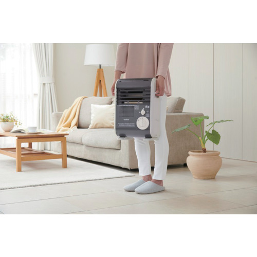 ●カセットガスの燃焼熱から電気を生み出してファンを回す、発電するファンヒーターです。