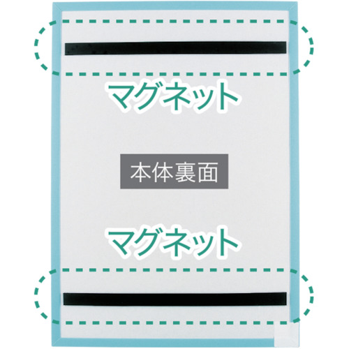 ●裏面にマグネットが2本付いているので、スチール書庫などに貼りつけて使えます。