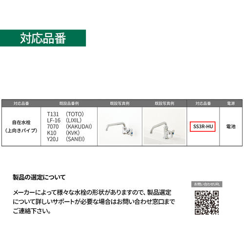 9. ミナミサワ 自動水栓 SuiSui Single(単水栓用)自在水栓用(上向き)後付けタイプ SS3R-HU