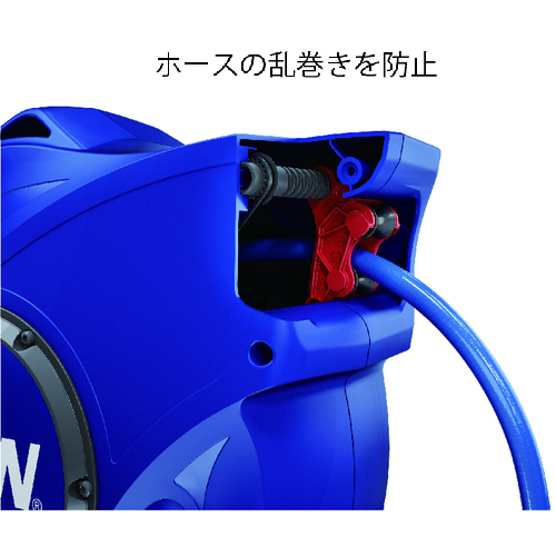 ●巻き取り制御機能によりホースを緩やかに巻き取るため、ホースの暴れによる危険を防止します。