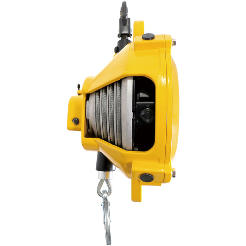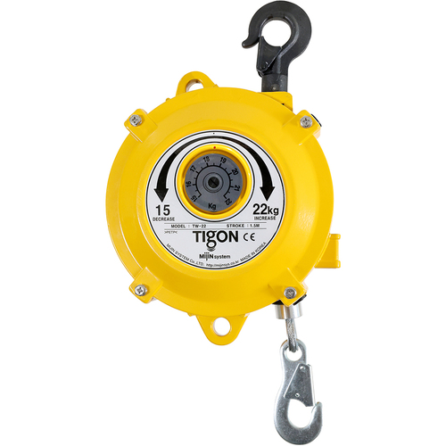 ●テーパー状のワイヤ巻取りドラムに内蔵された渦巻きばねと吊り下げ荷重のバランスで、吊り下げ物を引き出しストロークの範囲内で制止することができます。