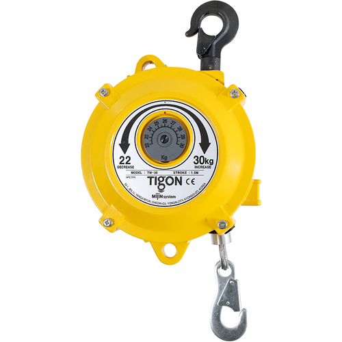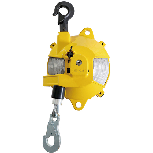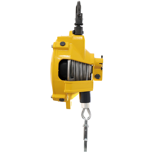 ●テーパー状のワイヤ巻取りドラムに内蔵された渦巻きばねと吊り下げ荷重のバランスで、吊り下げ物を引き出しストロークの範囲内で制止することができます。