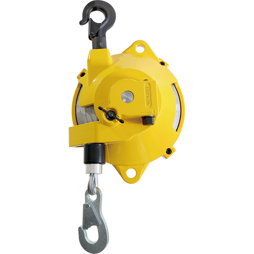 ●テーパー状のワイヤ巻取りドラムに内蔵された渦巻きばねと吊り下げ荷重のバランスで、吊り下げ物を引き出しストロークの範囲内で制止することができます。