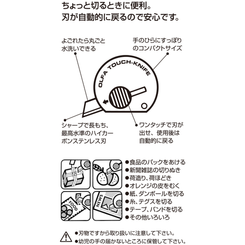 ●刃は水洗いできるので、お菓子などの袋物の開封・オレンジの皮なども簡単に切れます。