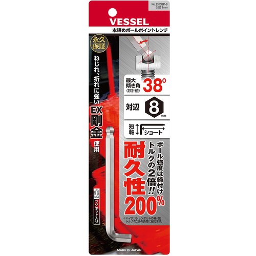 VESSEL 六角棒レンチ 本締めボールポイントレンチ短軸仕様(ショートタイプ) 8200BP-S 対辺8 8200BP-S-H8