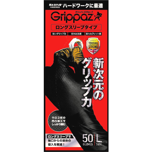 ハラダ グリッパーズグローブ ロング 厚手 ブラック L(50枚入) 37002-034