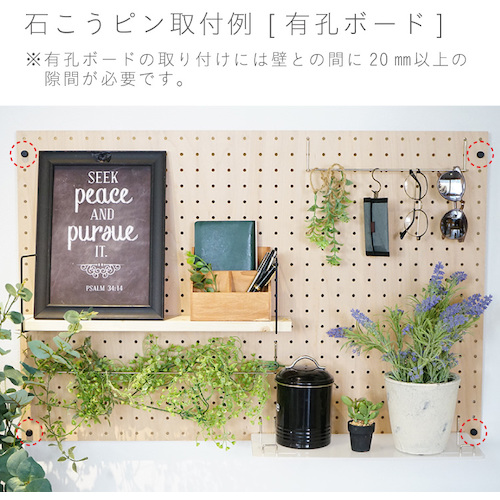 ●ピンで壁面用の金具を石こう壁に取り付けられます。