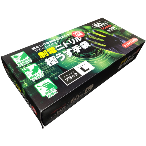 トワロン 使い捨て手袋 制電ニトリル極うす手袋 L (50枚入) 509-L