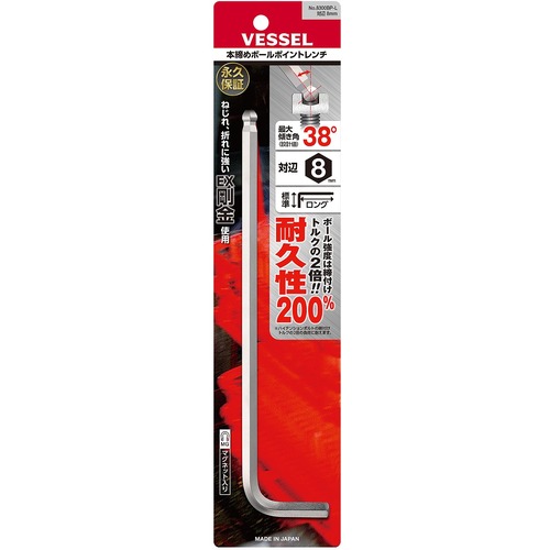 9. VESSEL 六角棒レンチ 本締めボールポイントレンチ(ロングタイプ) 8300BP-L 対辺8 8300BP-L-H8