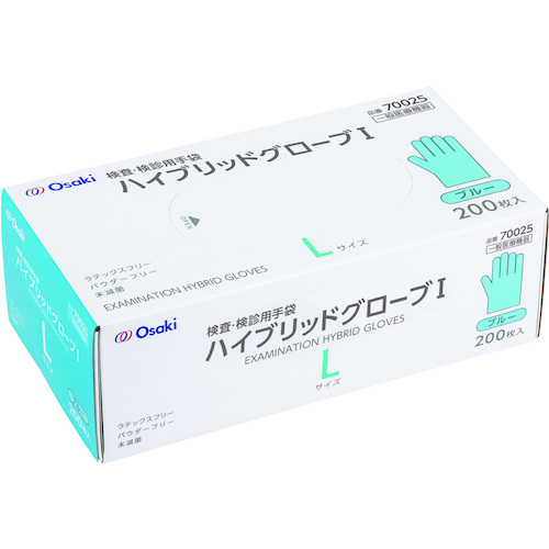 オオサキメディカル ハイブリッドグローブI L ブルー 200枚入 70025