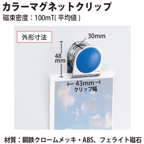 PLUS 80561)カラーマグネットクリップ 大 ブルー 80561