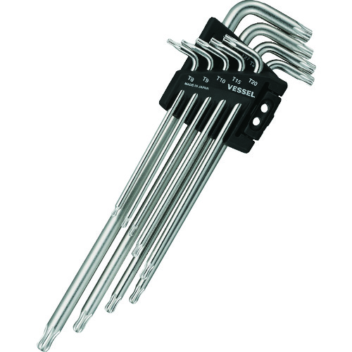 VESSEL ボールエンドトルクスレンチ 9本組 T8、T9、T10、T15、T20、T25、T27、T30、T40 8509BTX