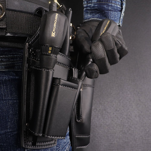 9. フジ矢 ドライバーペンチホルダー2段(黒金)LIGHT PU LEASER SERIES AH-72BG