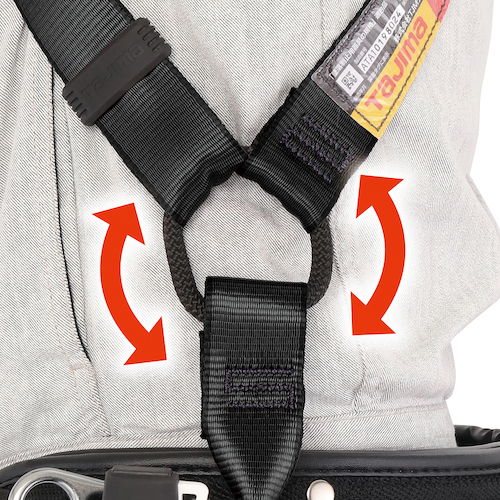 ●スマートパス構造:腰道具の上を通るベルトが細幅仕様になっているので、腰道具の隙間にベルトを逃がすことができます。