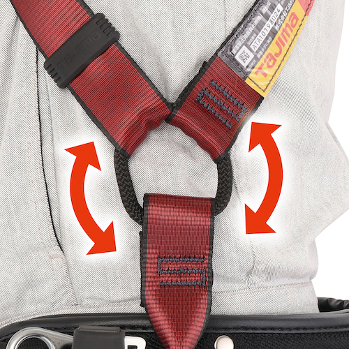 ●腰道具を付けたまま脱ぎ着ができます。ハーネスを使う時に胴ベルトを外す必要がありません。