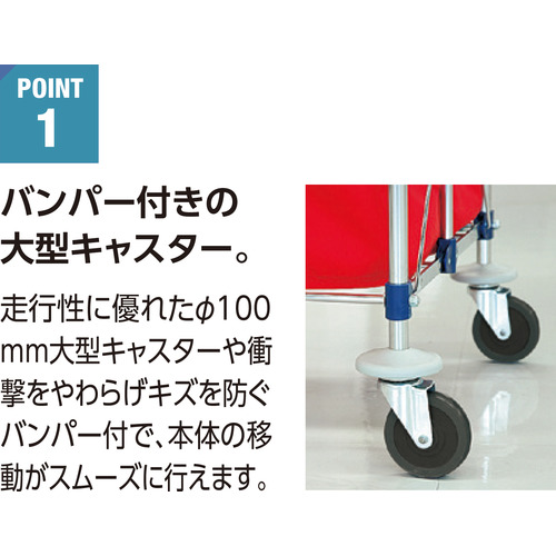 ●走行性に優れたφ100mm大型キャスター。バンパー付きで安心。