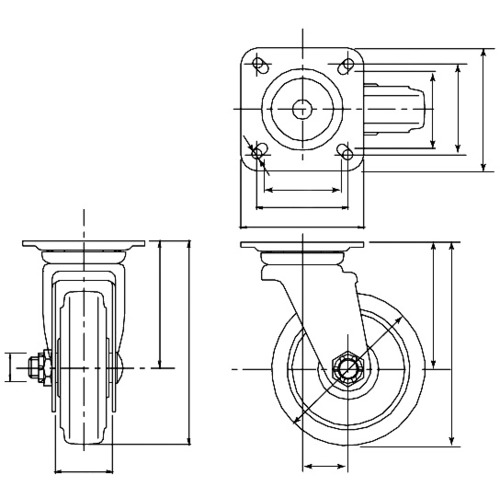 イノアック 牽引台車及び汚れ対策用キャスター アルミ芯金タイプ 旋回金具付 ウレタン CFU-100AWJ
