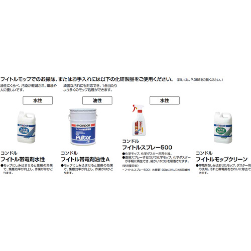 ●スプレーするだけで化学モップ・化学ダスターが手軽に再生でき、細かい埃の吸着効率をあげます。