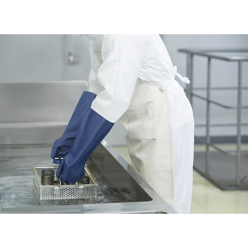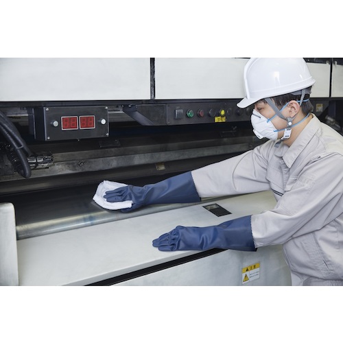 ●ニトリルゴム製化学防護手袋よりも6cm長いロングタイプです。