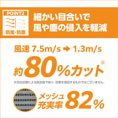 ●風・砂・塵・雪・鳥・虫などのバリアに最適なメッシュシートです。