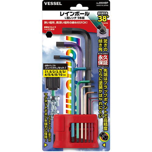 VESSEL 六角棒レンチセット レインボール L型レンチ No.8909BP(9本組) 8909BP