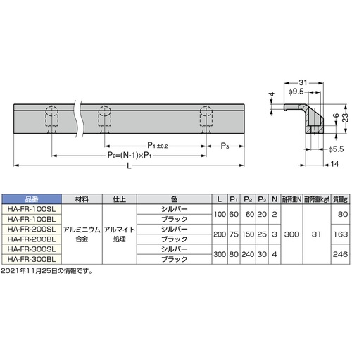 SUGATSUNE (100049739)HA-FR-100BLアルミ押出ハンドル HA-FR-100BL