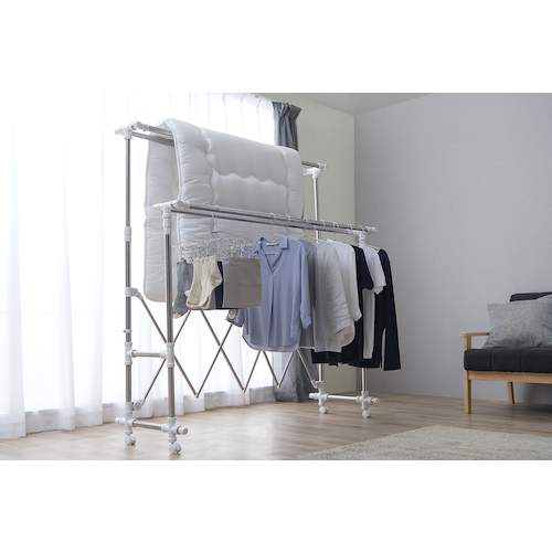 ●干す量やスペースに合わせて幅と高さが伸縮できる室内物干しです。