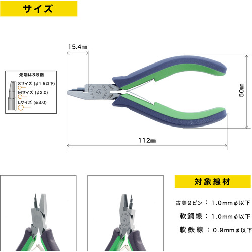 ●対象線材(mm):古美9ピン~φ1.0/軟銅線~φ1.0/軟鉄線~φ0.9