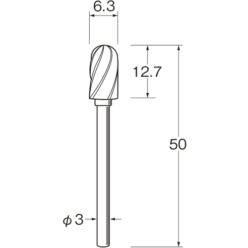 ●ラセン状にカットされたタイプで、クロスカットと比べよりスムーズな加工と美しい仕上げ面が特徴です。