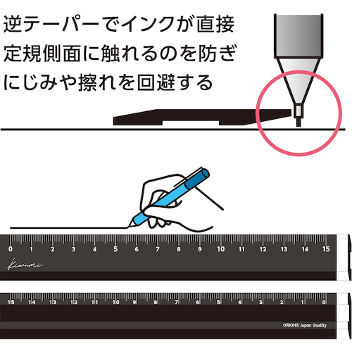 ●両面にメモリが印刷してあり、右利き左利きのどちらでも対応している定規です。