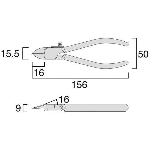 9. フジ矢 バネ付プラスチックニッパ (ラウンド刃)150mm 90PR-150